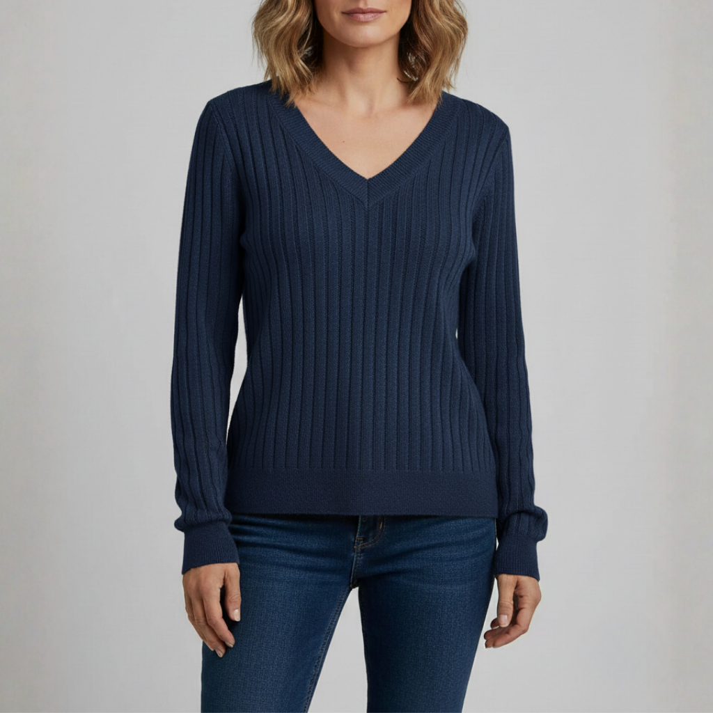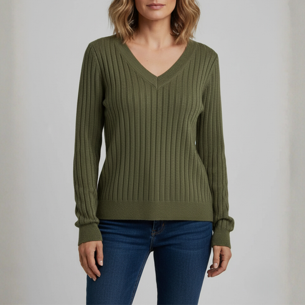 Damen Gerippter Strickpullover mit halbem Reißverschluss