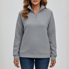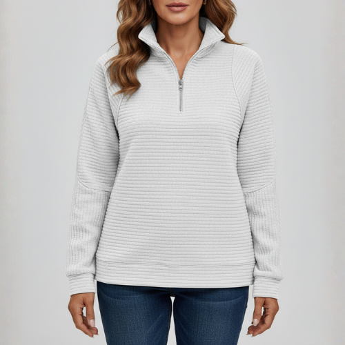 Damen Gerippter Strickpullover mit halbem Reißverschluss