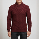 Ein markanter Pullover mit strukturierter Oberfläche, die dem Look Tiefe und Charakter verleiht. Der hohe Kragen mit Knopfleiste setzt einen dezenten Akzent und betont die maskuline Linie. Durch die klare Form entsteht eine harmonische Silhouette, die lässige Eleganz ausstrahlt. Ideal für einen gepflegten Auftritt mit modernem Understatement.